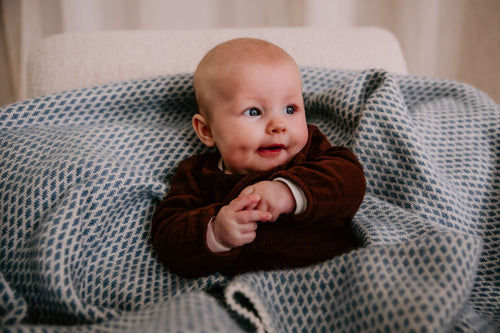 Ledikantdeken wol - Blauw